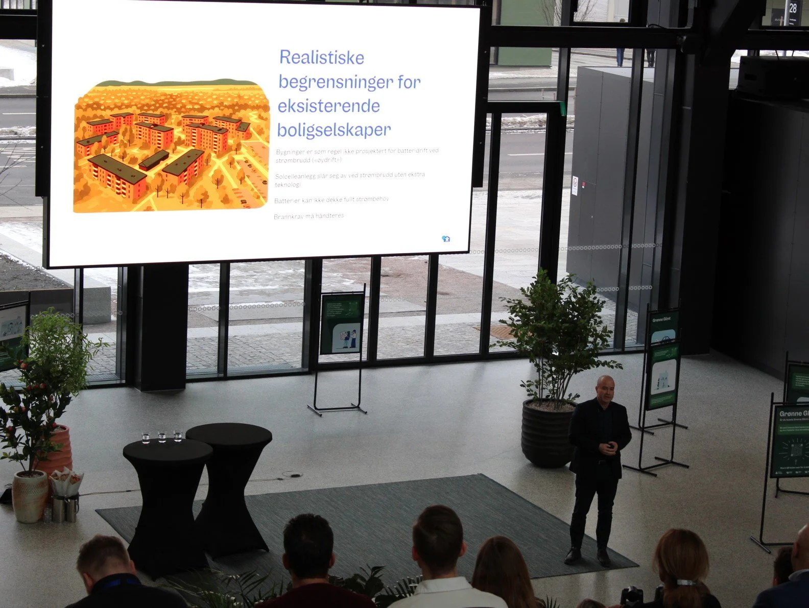 Glasshallen i Construction City var fullsatt. Mange møtte opp for å høre om beredskap og bærekraft onsdag 4. februar 2026. Perfekt lokasjon i et bygg som er et prisbelønnet signalbygg, et av Norges mest ambisiøse næringsbyggprosjekter med sertifisert BREEAM‑NOR Excellent